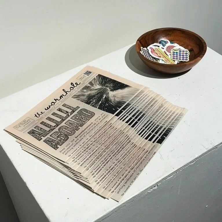 While these drawings were later mounted, framed, and exhibited publicly at the Samford University Art Gallery in Fall 2025, they were not the central focus of the residency itself. Instead, the primary “outbreath” of the project took the form of a publication titled The Wormhole, an artist newspaper reflecting on my experience as a late-diagnosed autistic and ADHD artist.